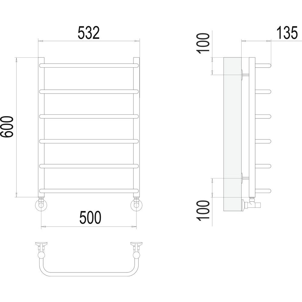 Для полной установки полотенцесушителя необходимо дополнительно приобрести вентиль и американку (по 2 шт. каждого), а также отражатели (2 шт.), которые не входят в комплект. Эти детали обеспечат корректное подключение и использование устройства.