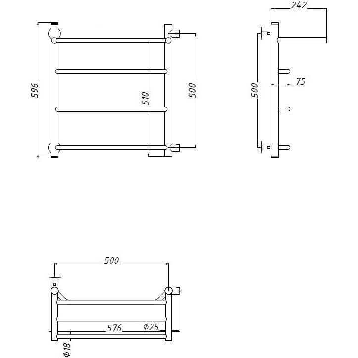 Полотенцесушитель водяной Тругор Браво устанавливается подвесным способом и имеет габариты 57,6x59,6 см с межосевым расстоянием 50 см. Изготовлен из паяной трубы, выполненной из нержавеющей стали, обеспечивая изделию устойчивость к коррозии и износостойкость. В комплекте имеются крепления, что облегчает установку.