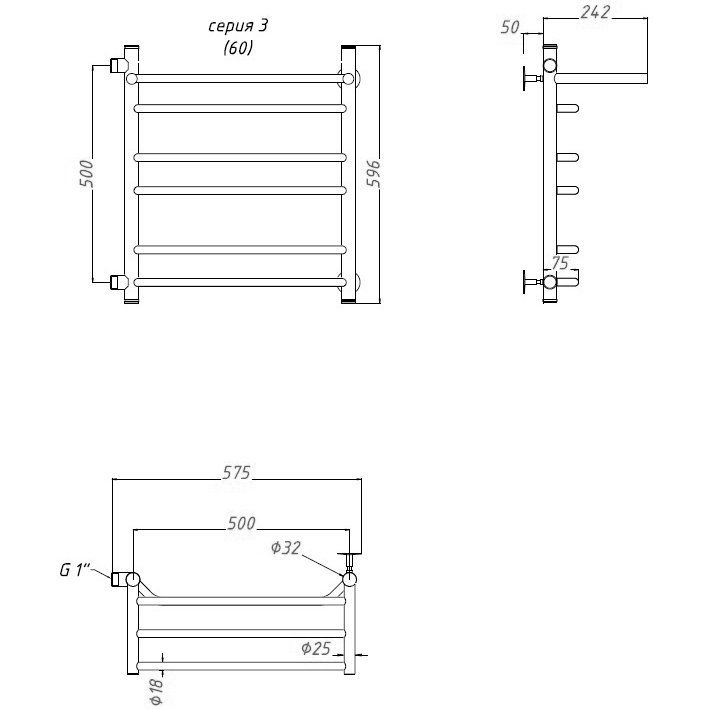 С размерами 57,6x59,6 см, полотенцесушитель гармонично впишется в ванную комнату. Благодаря межосевому расстоянию в 50 см и подвесной конструкции, его установка проста и удобна. Подключение ориентировано вертикально, с подачей воды сверху и выпуском потока снизу, что улучшает циркуляцию тепла. Изготовленный из надежной нержавеющей стали, он гарантирует долгий срок службы. В комплект входят крепления, а гарантия составляет 1 год, подтверждая его надежность и качество производства в России.