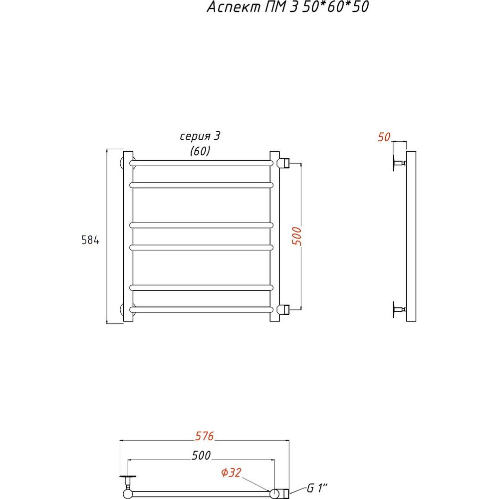 Полотенцесушитель Тругор ЛЦ Аспект ПМ 3 имеет габариты 57,6x58,4 см с межосевым расстоянием в 50 см, что идеально подходит для вертикального подключения с подачей воды сверху и выпуском снизу. Устройство подвесного типа, выполнено из нержавеющей стали, и оснащено креплениями. Продукт рассчитан на эффективный обогрев площади до 3 м2.