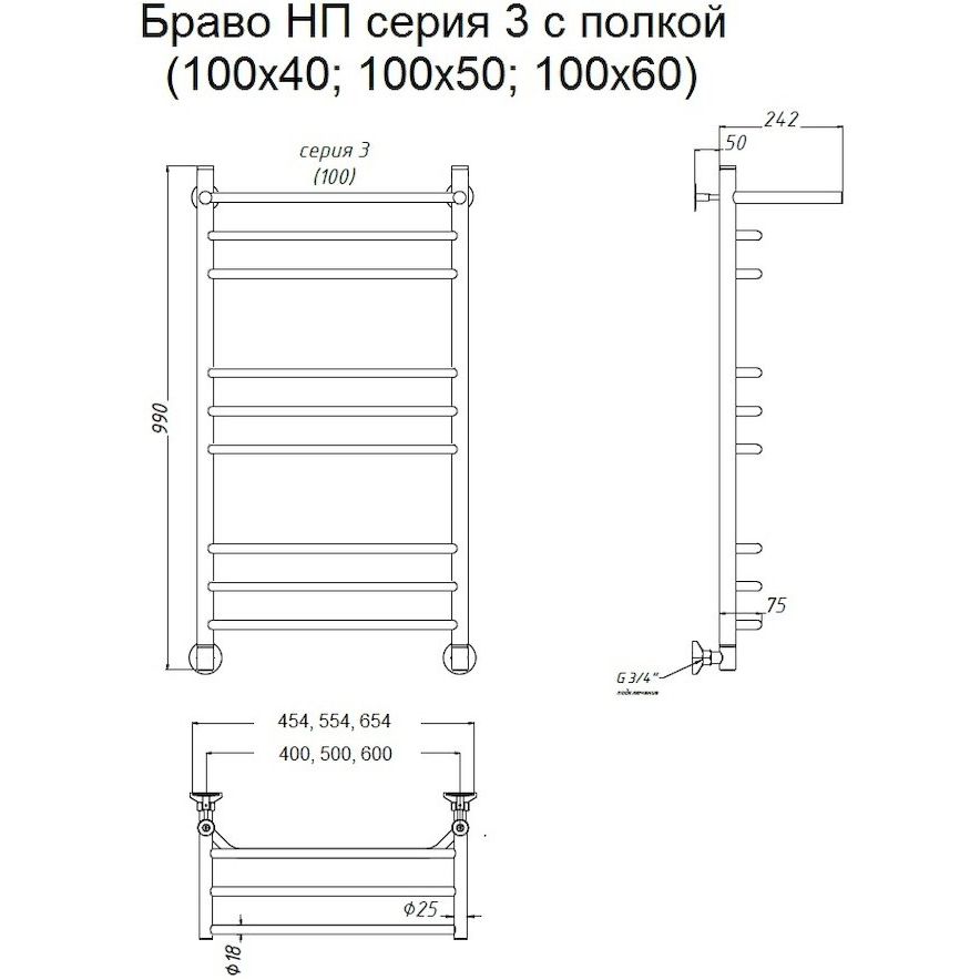 Габаритные размеры полотенцесушителя составляют 55,4x100,6 см, с межосевым расстоянием 50 см, что обеспечивает площадь обогрева в 5,92 м². Он выполнен в подвесной конструкции и оборудован креплениями для легкой установки. Используемая паяная труба и нержавеющая сталь гарантируют высокую надежность. Изделие производит российская компания и оснащено многообразными вариантами подключения воды: можно установить горизонтальное подключение, вертикальное подключение с подачей воды сверху и выпуском потока снизу, а также диагональное подключение.
