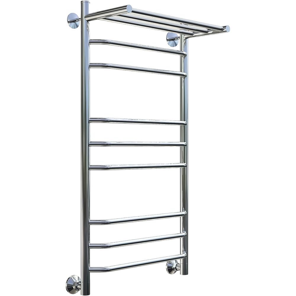 Полотенцесушитель водяной Тругор ЛЦ Браво НП 3 П 100x50, оснащенный удобной полкой, создан для комфортного и надежного использования в вашей ванной комнате. На первый взгляд, продуманная конструкция представляет собой 11-секционную лесенку, выполненную из полированной нержавеющей стали AISI 304, толщиной 2 мм. Благодаря аргонно-дуговой сварке, изделие демонстрирует герметичность и выдерживает перепады давления, что делает его долговечным спутником вашего дома.