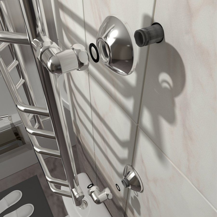 Перед установкой полотенцесушителя следует приобрести американку в количестве 2 шт. для правильного монтажа. Также учтите, что отражатели в комплект не входят и их требуется заказывать отдельно.