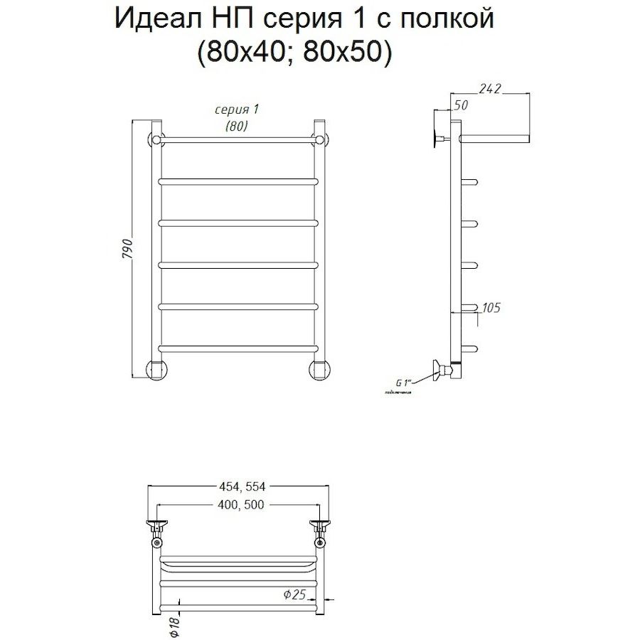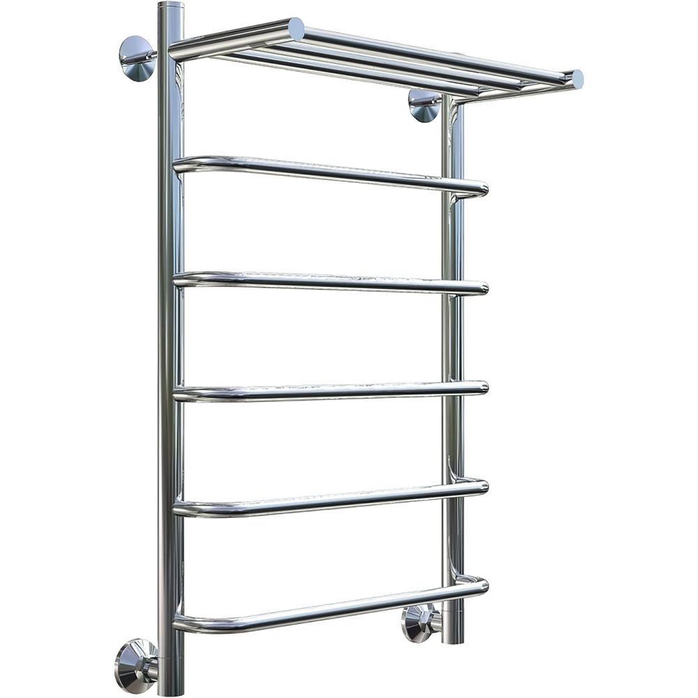 Полотенцесушитель имеет габариты 55,4 см в ширину и 80,6 см в высоту и оснащён удобной полкой. Межосевое расстояние составляет 50 см, что обеспечивает совместимость с различными системами отопления. Возможны горизонтальное, вертикальное подключения и диагональный вариант, что позволяет гибко адаптировать устройство под различные условия установки. Подключение воды осуществляется сверху, а выпуск потока — снизу. Изготовленный из качественной паяной трубы, данный полотенцесушитель не только функционален, но и эстетично выглядит в любом интерьере.