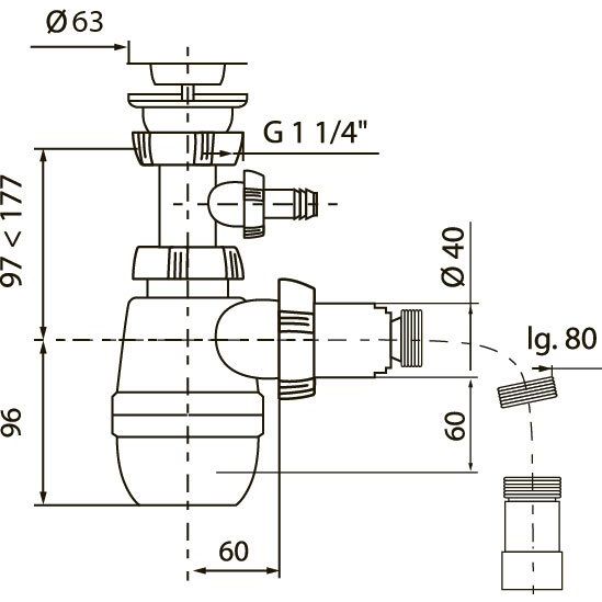 Сифон Wirquin Минор: Пластиковый сифон с боковым выпуском и гидрозатвором. Удобное подключение к стиральной машине. Франция, гарантия 2 года.