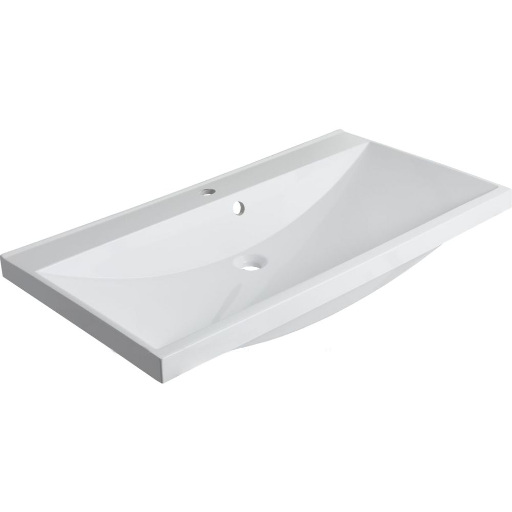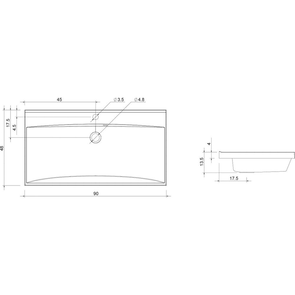 Раковина имеет размеры 90 на 48 см, что делает её удобной для размещения даже в компактной ванной комнате. Изготовлена из искусственного мрамора, обеспечивая прочность и устойчивость к повреждениям. Изделие оснащено сливом-переливом, имеет одно отверстие под смеситель стандартного размера и рассчитано на сифон диаметром 3,2 см. Гарантия качества от производителя — 2 года.