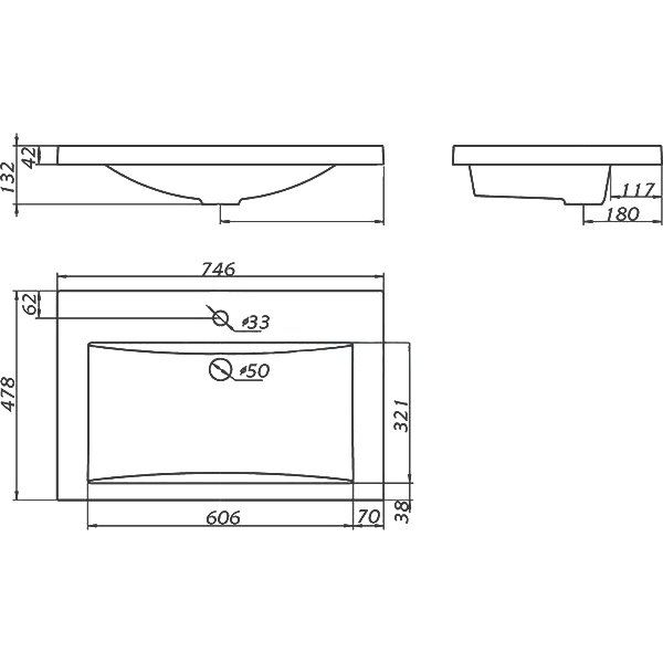 Модель Art&Max AM-LAV 75 обладает габаритами 74,6x47,8 см, что делает ее универсальным вариантом для большинства ванных комнат. Раковина оснащена отверстием диаметром 3.2 см для установки сифона и имеет одно готовое отверстие для смесителя. В комплекте поставляется арматура для слива-перелива, а для полноценного использования необходимо дополнительно приобрести донный клапан.