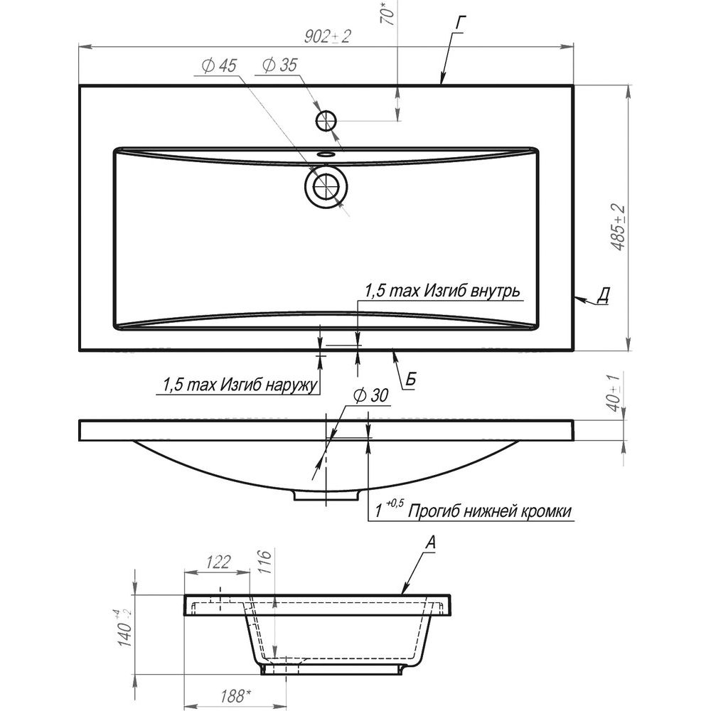 Мебельная раковина Art&Max AM-LAV 90 обладает габаритами 90,4x48,7 см, что дает достаточно пространства для комфортного использования. Она оснащена системой слив-перелива, а для подключения сифона предусмотрен стандартный диаметр 3,2 см. В комплект входит вся необходимая арматура для слива-перелива, однако, обратите внимание, что донный клапан нужно приобрести отдельно.