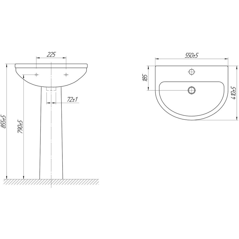 Мебельная раковина DIWO Коломна 0110 имеет размеры 55x41 см, что позволяет экономить пространство даже в самых небольших помещениях. Выполнена из прочного фаянса, что обеспечивает долгую службу и устойчивость к повреждениям. Подвесная конструкция позволяет максимально использовать нижнее пространство. Предусмотрено 1 готовое отверстие для установки смесителя, а встроенный слив-перелив идет в комплекте. Для сифона подходит диаметр 3.2 см. Обратите внимание, что донный клапан покупается отдельно.