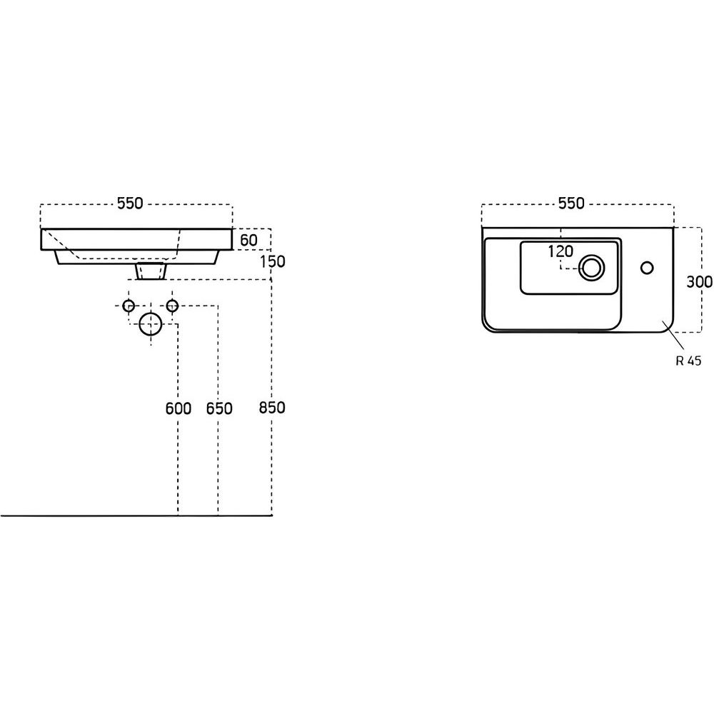 - Продуманная эргономика — раковина шириной 55 см идеально подойдёт для небольших помещений.