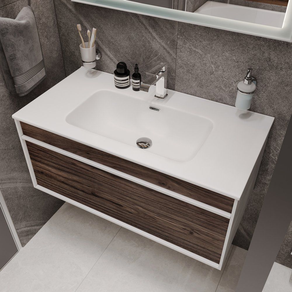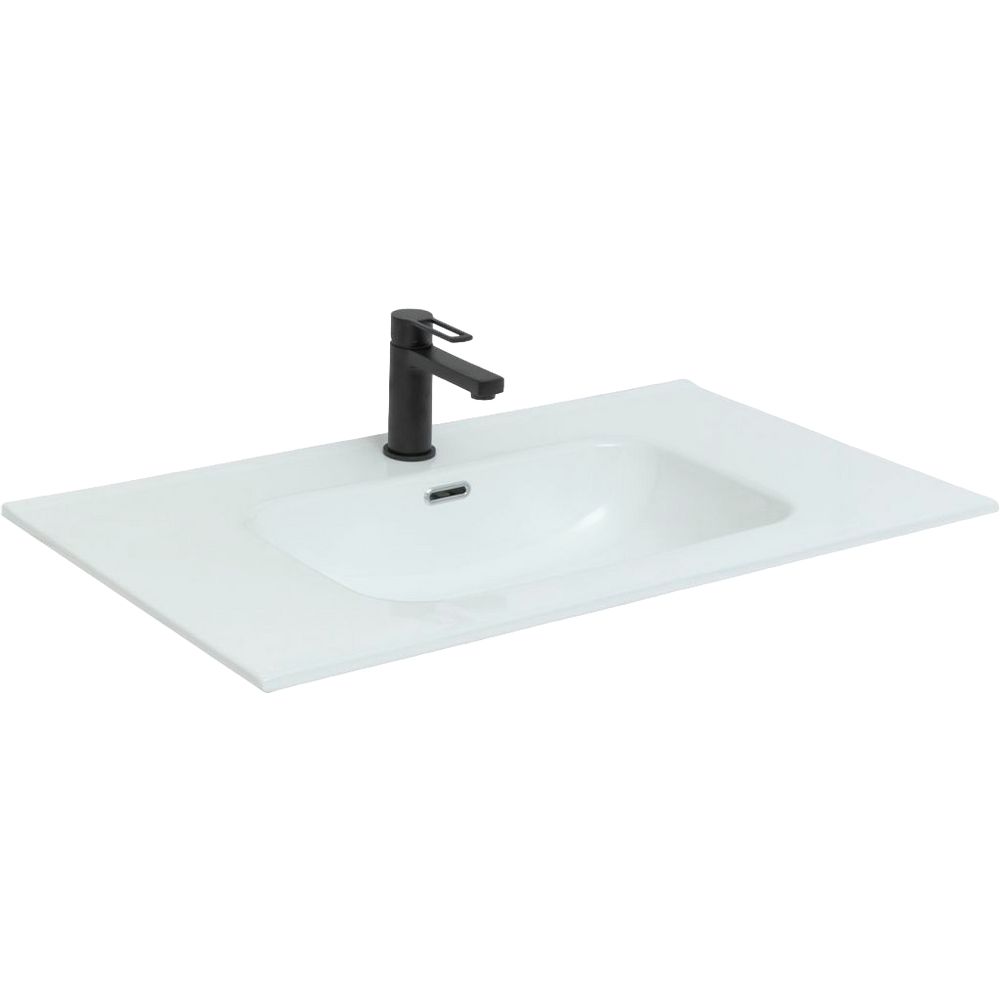 Раковина имеет габариты 91x46,5 см и идеально вписывается в большинство стандартных мебельных комплектов для ванной. Изготовленная из прочного фарфора, она гарантирует долгий срок службы и сохранение первоначального внешнего вида. Модель оснащена встроенным сливом-переливом и предлагает одно стандартное отверстие для монтажа смесителя. Диаметр необходимого сифона составляет 3.2 см. Обратите внимание, что донный клапан потребуется приобрести отдельно.