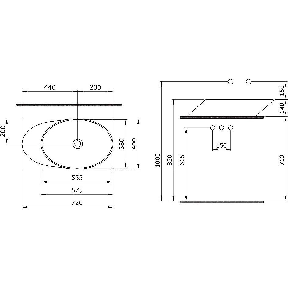 Раковина имеет размеры 72x40 см, что делает ее идеально подходящей для средних и больших ванных комнат. Изготовлена из прочного фарфора, который гарантирует долговечность и устойчивость к повреждениям. Обратите внимание, что модель разработана для сифонов диаметром 3.2 см. Раковина продается без донного клапана, который необходимо приобрести отдельно.
