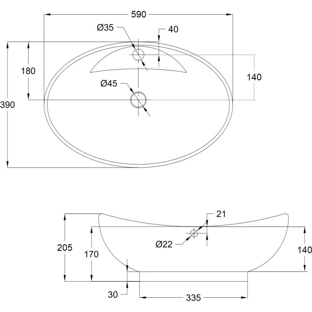Раковина BOND Oval S15-590 — это отличный выбор для тех, кто ценит эстетичность и устойчивость материалов в интерьере ванной комнаты. Стильный и современный дизайн прекрасно вписывается в любой стиль от минимализма до более классических решений. Изготовленная из высококачественного сантехнического фарфора, она покрыта утолщённым слоем стекловидной глазури, который защищает от бактерий и выцветания. По своей форме она овальная и обтекаемая, что предотвращает накопление пыли и облегчает уход. Эта раковина предназначена для установки смесителя и оснащена сливом с переливом, что делает её выбором номер один для современных ванных комнат.