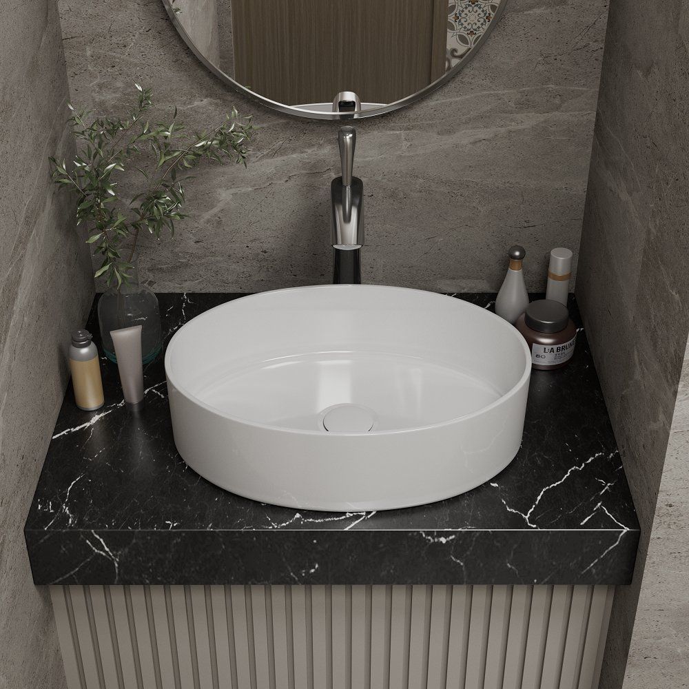 Раковина D&K Matrix 50 имеет ширину 50 см и глубину 36 см, что позволяет экономно использовать пространство в ванной комнате. Изделие изготовлено из высококачественного фарфора, что обеспечивает его прочность и простоту ухода. Она рассчитана на сифон диаметром 3.2 см, а донный клапан необходимо приобрести отдельно.