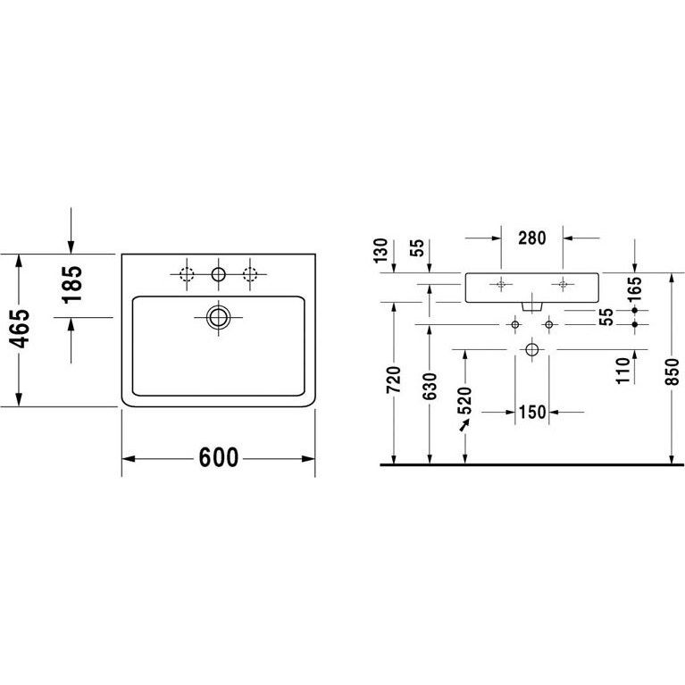 Размеры раковины составляют 60x46,5 см, что делает ее удобной для большинства ванных комнат, не занимая лишнего пространства. Подвесная конструкция способствует легкой установке и уходу за простанством под раковиной. Она оснащена встроенным сливом-переливом и имеет одно готовое отверстие под смеситель диаметром 3.2 см. Важно отметить, что донный клапан приобретается отдельно. На изделие предоставляется гарантия 5 лет, что подчеркивает надежность продукции от немецкого бренда Duravit.