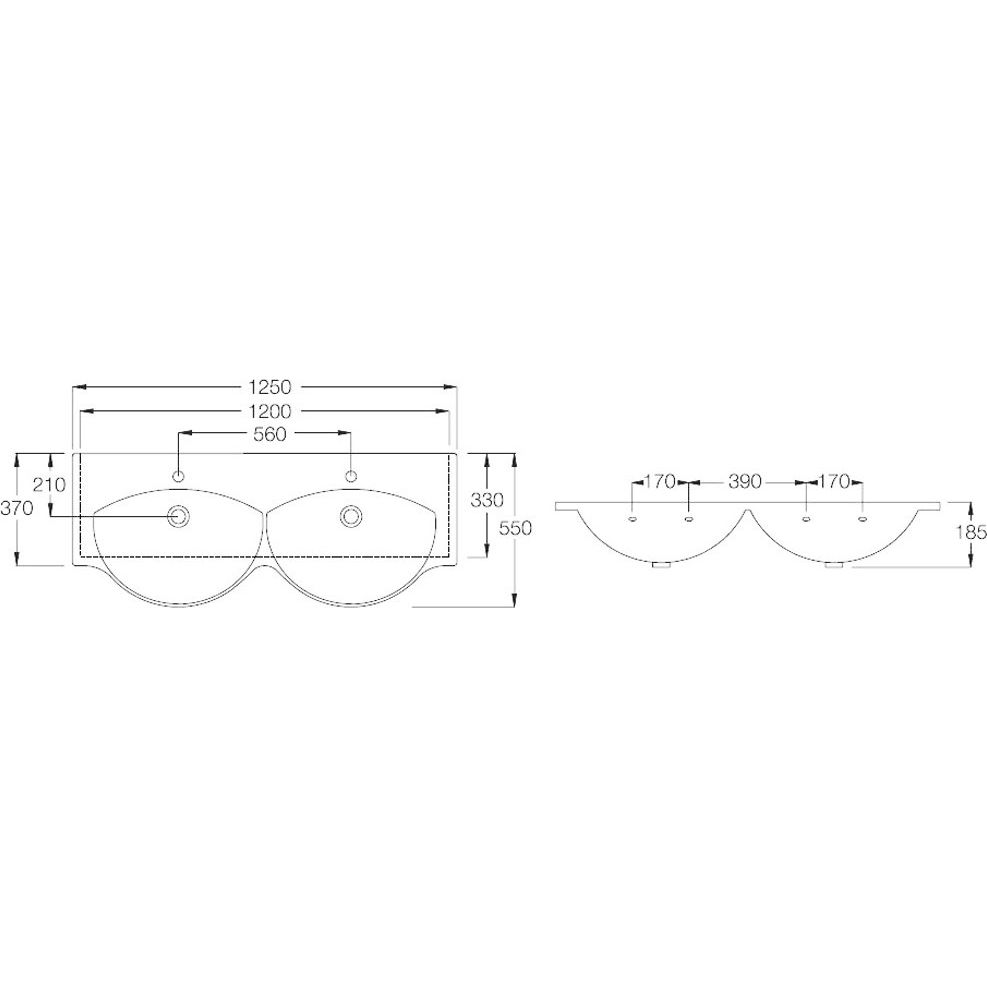- Габариты раковины составляют 125x55 см, что делает её подходящей для просторных ванных комнат.