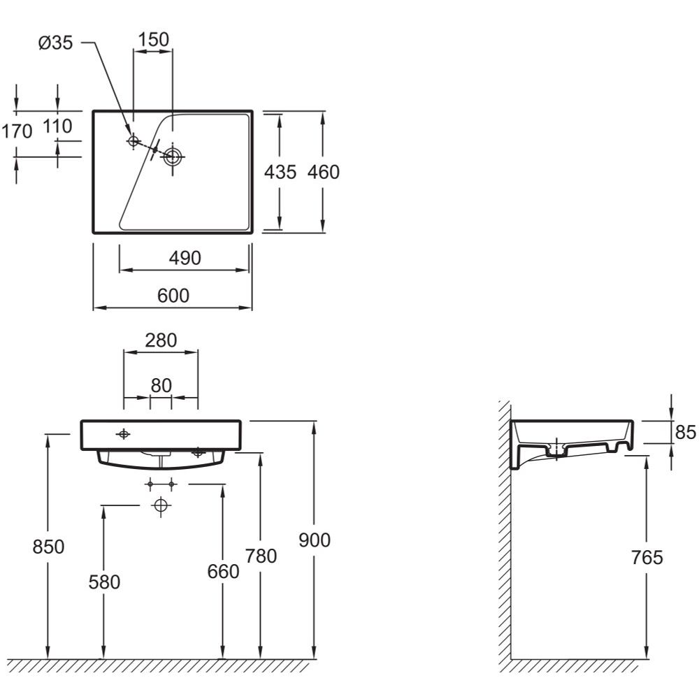 Размеры раковины составляют 60x46 см, что делает её компактной и подходящей для большинства ванных комнат, не ограничивая вас в функциональности. Модель подвесная, что позволяет легко удерживать чистоту в ванной комнате, а фарфоровый материал обеспечивает стойкость к износу и простоту ухода. Для корректной работы сифон должен иметь диаметр 3.2 см, а донный клапан нужно приобрести отдельно. Встроенный слив-перелив идет в комплекте и предотвращает переполнение раковины. Также раковина имеет одно готовое отверстие для установки смесителя.