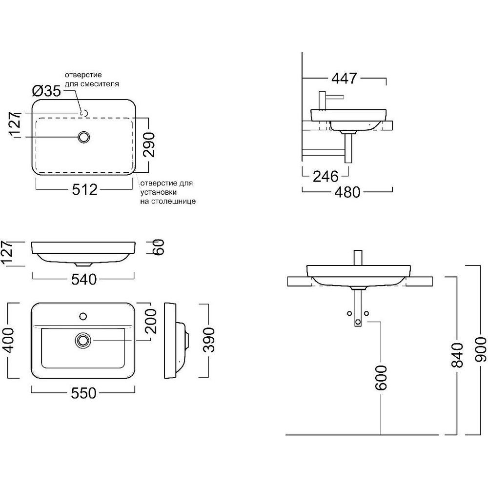 Эта раковина имеет размеры 55x40 см, что делает её идеальной для установки в ванных комнатах как стандартного, так и небольшого размера. Встраиваемая сверху конструкция облегчает монтаж, а один уже готовый отверстие под смеситель позволяет быстро и удобно установить необходимое оборудование. Раковина изготовлена из фаянса, что обеспечивает её долговечность и устойчивость к образованию пятен. Для полноценного использования потребуется докупить донный клапан, поскольку он не входит в комплект. Также учтите, что раковина предназначена для сифона диаметром 3.2 см.