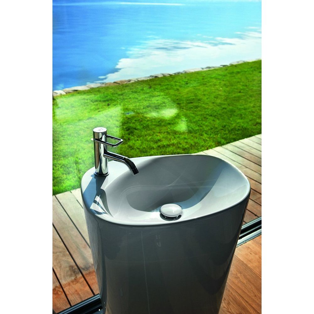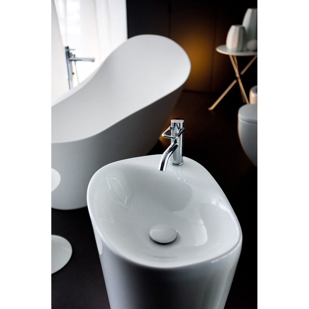 Эта напольная раковина Laufen Palomba имеет размеры 52,5x43,5 см, что делает её компактной и элегантной. Изготовленная из прочного фарфора, она выдержит годы активного использования. Модель оснащена одним отверстием для смесителя и поддерживает установку сифона диаметром 3.2 см. Обратите внимание, что донный клапан необходимо приобретать отдельно.