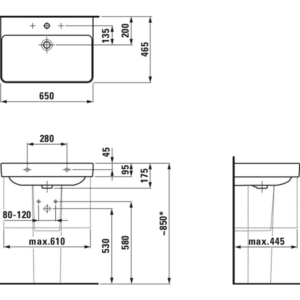 Эта модель раковины имеет размеры 65x46,5 см, что делает её достаточно компактной, чтобы вписаться в любую ванную комнату. Раковина изготовлена из прочного фарфора, который обеспечивает устойчивость к образованию сколов и царапин. Она оснащена встроенным сливом-переливом и поставляется с одним готовым отверстием под смеситель. Если потребуется, можно использовать два намеченных отверстия для дополнительного монтажа. Диаметр отверстия для сифона составляет 3.2 см.