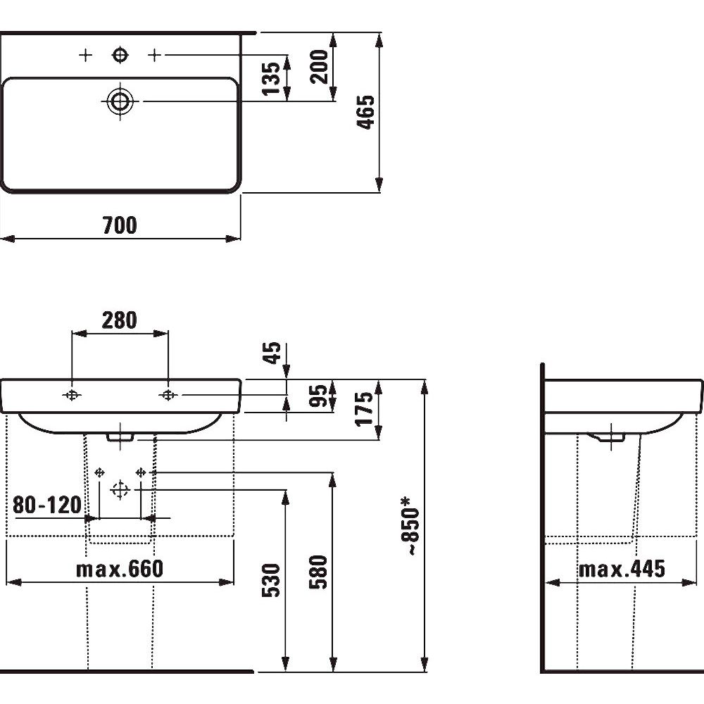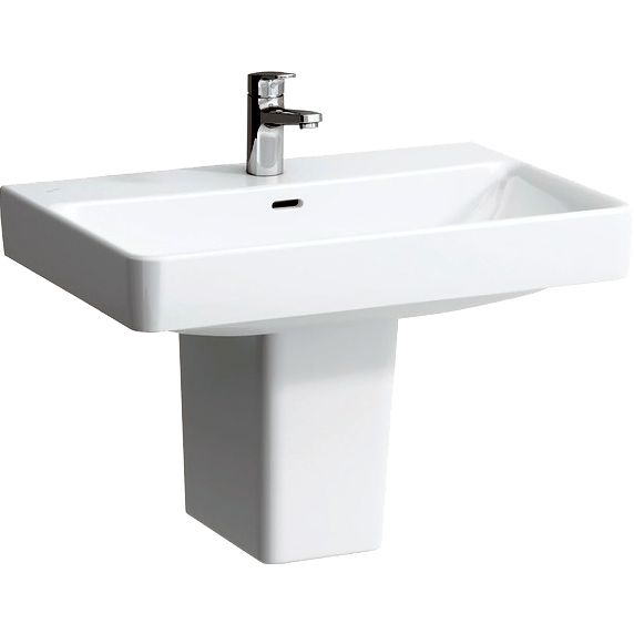 Раковина Laufen Pro S обладает шириной 70 см и глубиной 46,5 см, что позволяет экономить пространство в ванной комнате, при этом обеспечивая комфортное использование. Изготовленная из фарфора, она гарантирует долговечность и простоту в уходе. Подвесной формат облегчает уборку, а наличие встроенного слив-перелива обеспечивает дополнительное удобство. Диаметр отверстия для сифона составляет 3,2 см, а донный клапан необходимо приобрести отдельно. Раковина оснащена одним готовым и двумя намеченными отверстиями под смеситель. Полупьедестал, выполненный также из фарфора, монтируется вплотную к стене и имеет размеры 20x32,5x28,5 см.