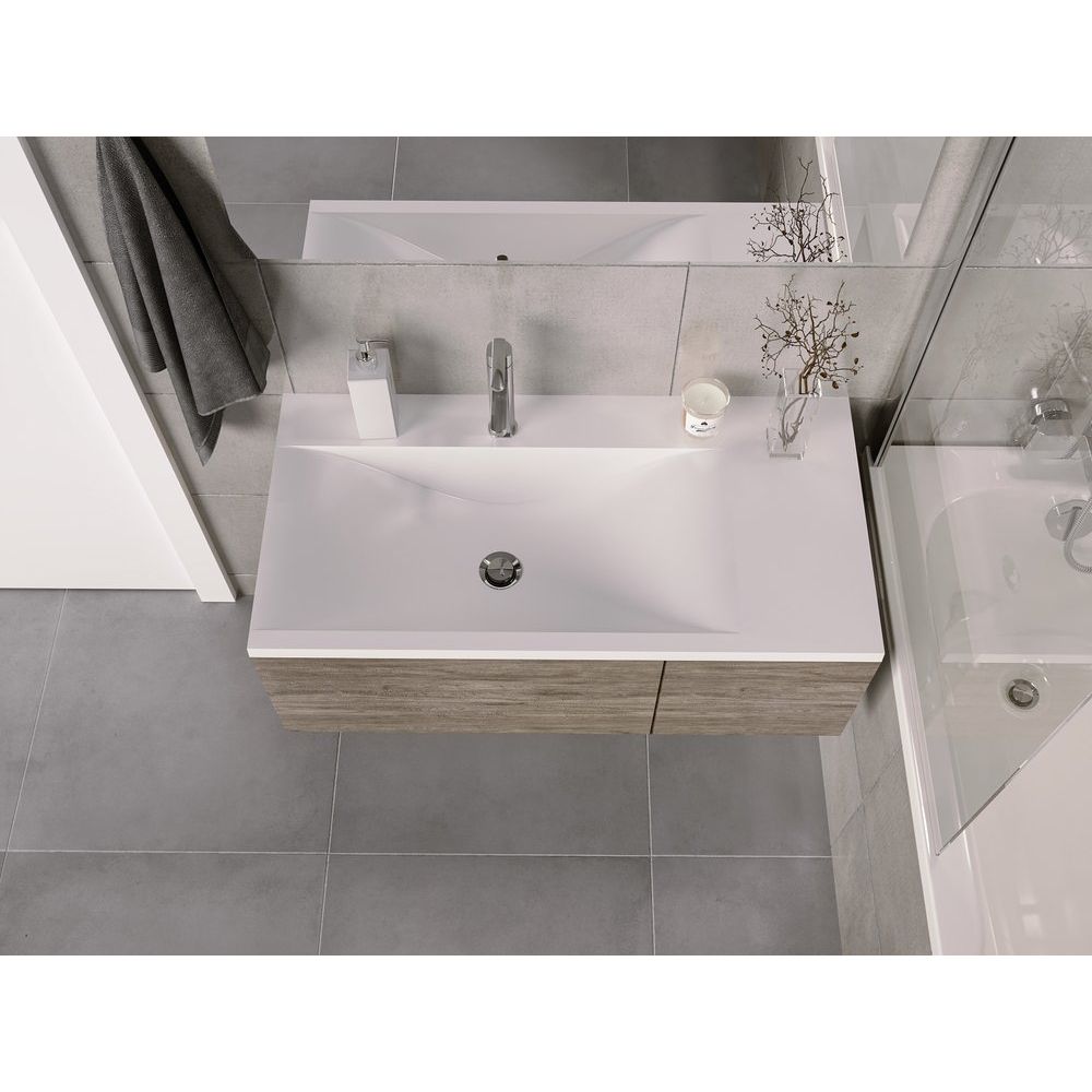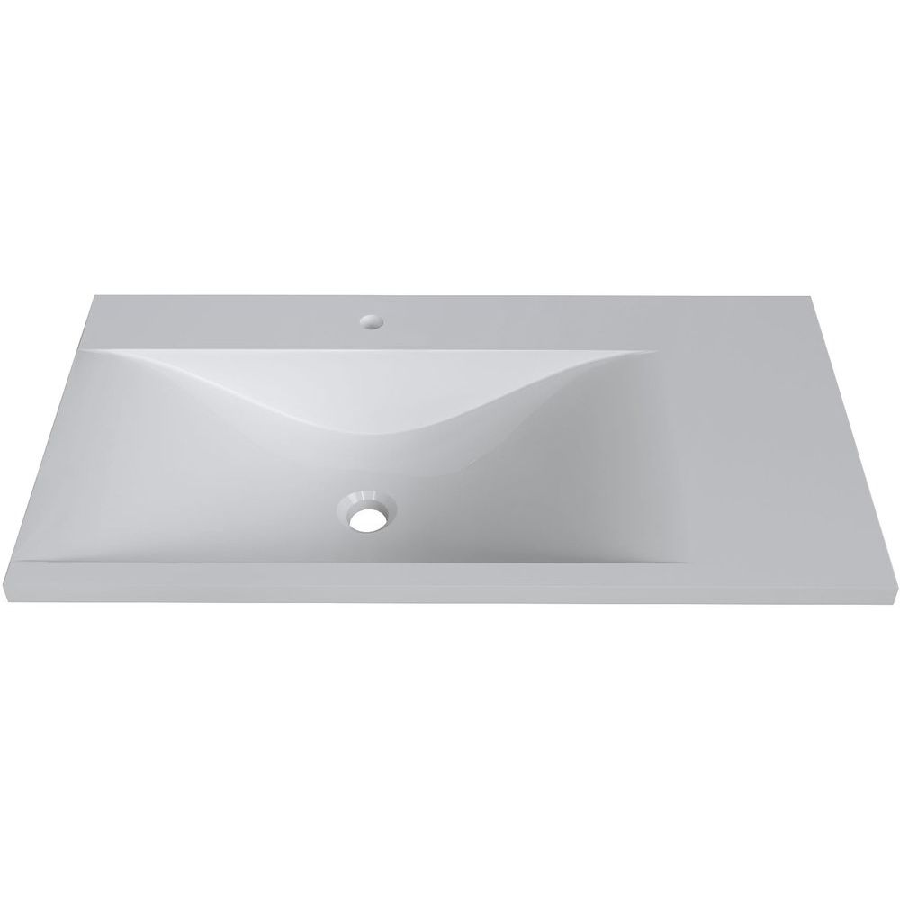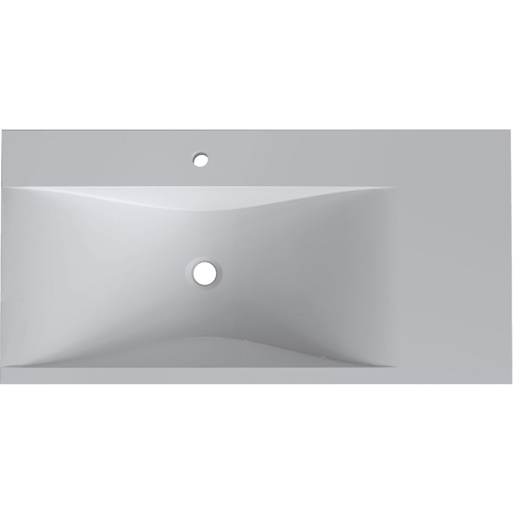 Раковина имеет размеры 89,6x44,7 см, что делает её идеальной для просторной ванной комнаты. Изготовлена из прочного искусственного мрамора, который легко чистится и сохраняет внешний вид на долгие годы. Подходит для сифона диаметром 3.2 см и имеет одно готовое отверстие под смеситель. Обратите внимание, что донный клапан необходимо приобрести отдельно.