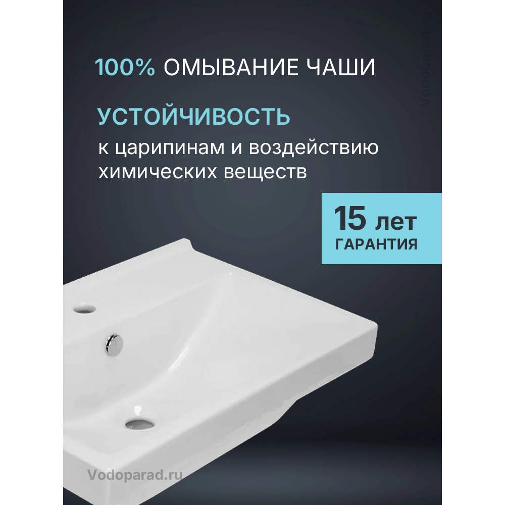 Мебельный умывальник Fest 60 популярен среди потребителей за счет глубины чаши при компактной форме.