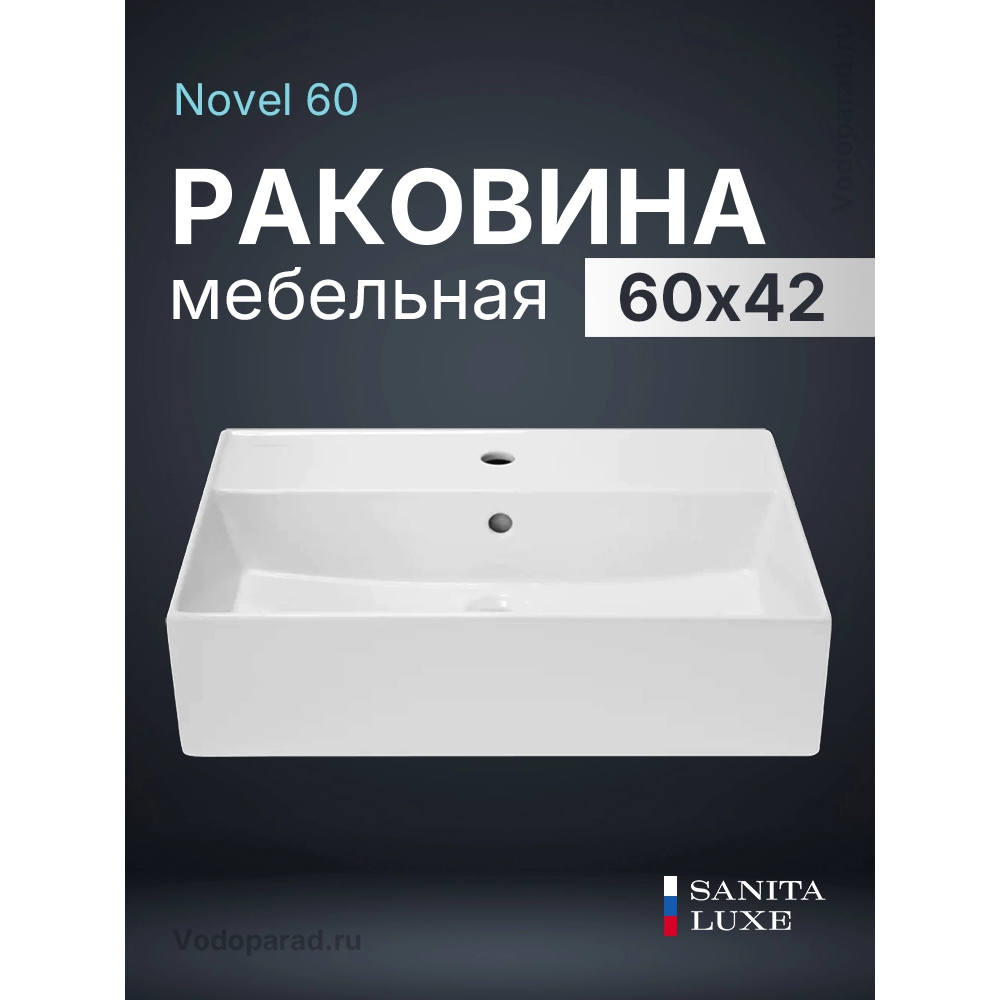 Утонченный умывальник Novel шириной 60 см геометрически совершенен – модель имеет четкие графичные формы, тонкие и точные грани и глянцевую эталонную белую глазурь.