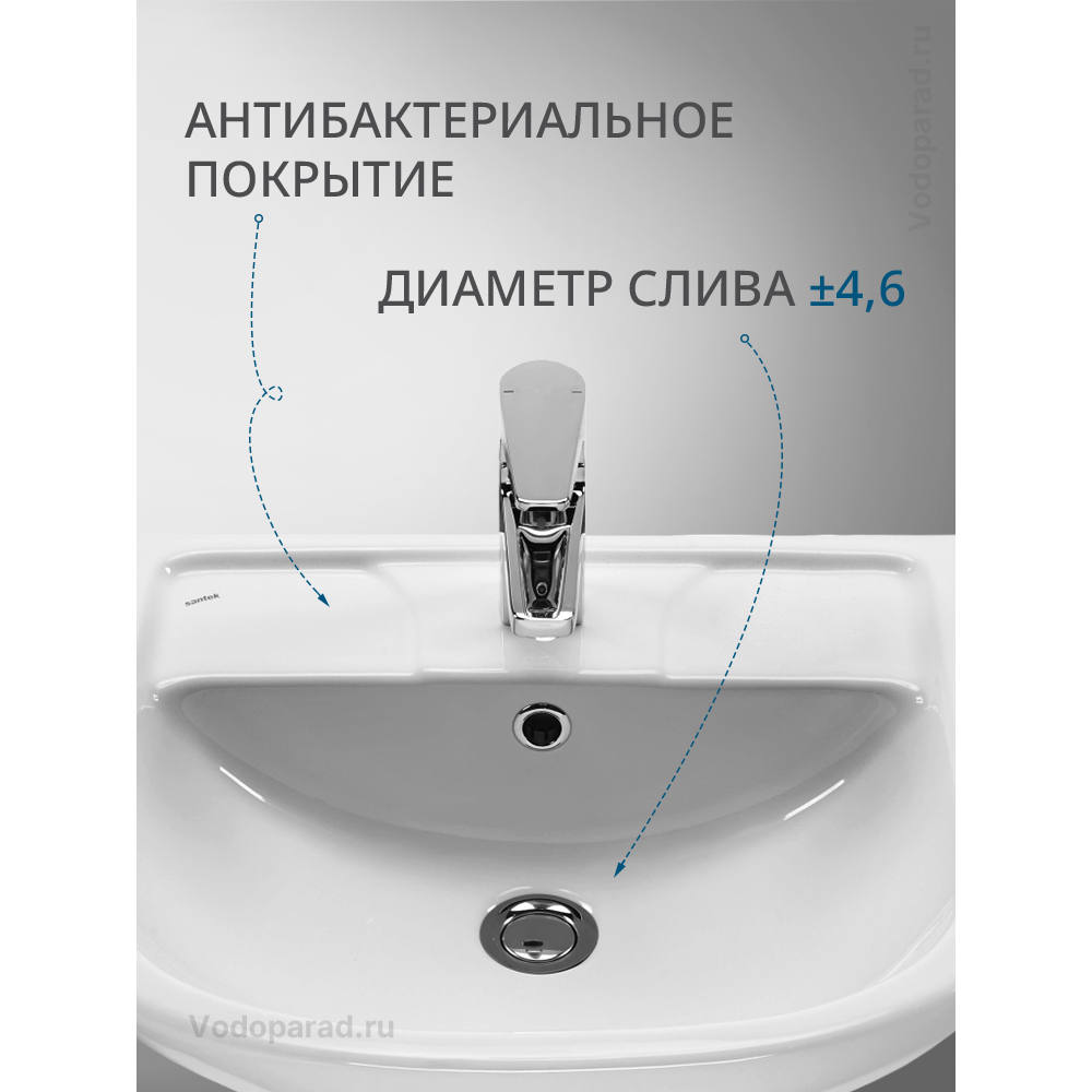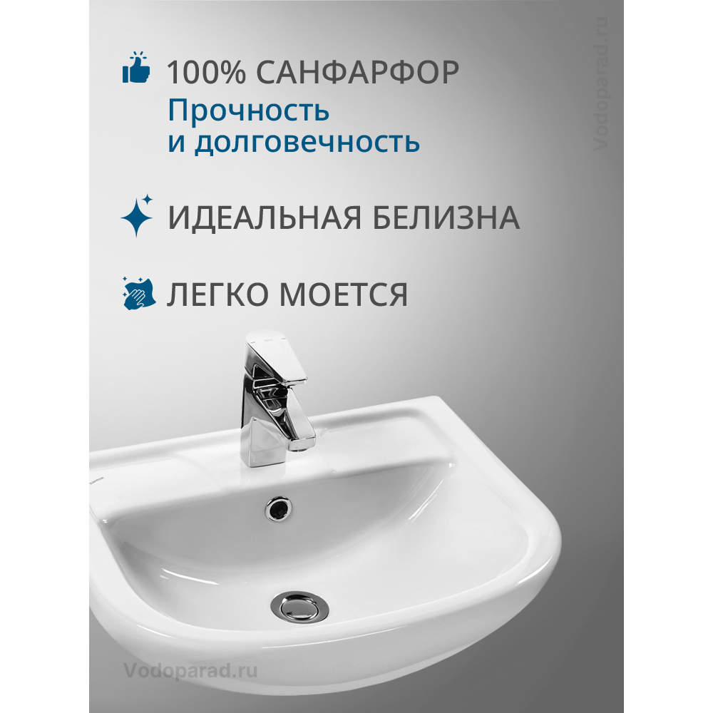 Раковина Santek Ладога 50 с отверстием под смеситель - это отличный выбор для тех, кто ценит качество, функциональность и стиль. Придайте своей ванной комнате утонченный вид и повысьте ее функциональность с этой прекрасной раковиной.
