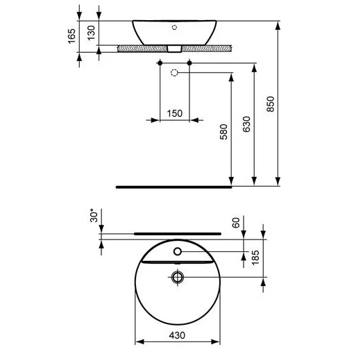 Connect Sphere Умывальник-чаша 43х43 см, 1 отверстие под смеситель, с монтажным шаблоном EESV82867, без крепежа (рекомендуемый крепеж - EEE686067).