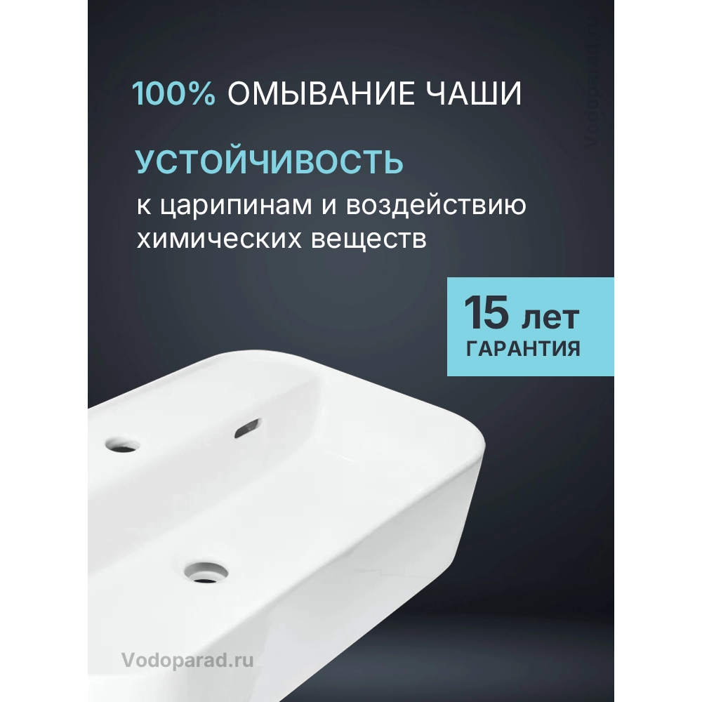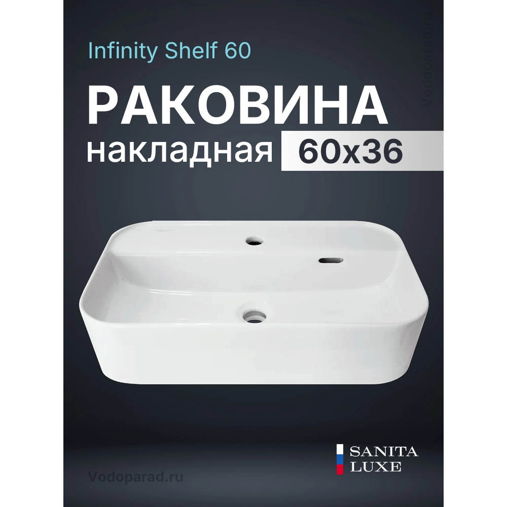 Накладной умывальник Infinity Shelf имеет универсальный размер 600х360 мм и обтекаемую форму, облегчающей уборку, а также собственный уникальный характер. Широкая полочка позволяет подобрать невысокий смеситель и разложить ванные принадлежности.