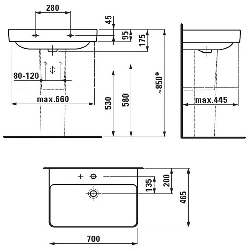Размер: 700х465х175мм. Подвесная раковина Pro S.