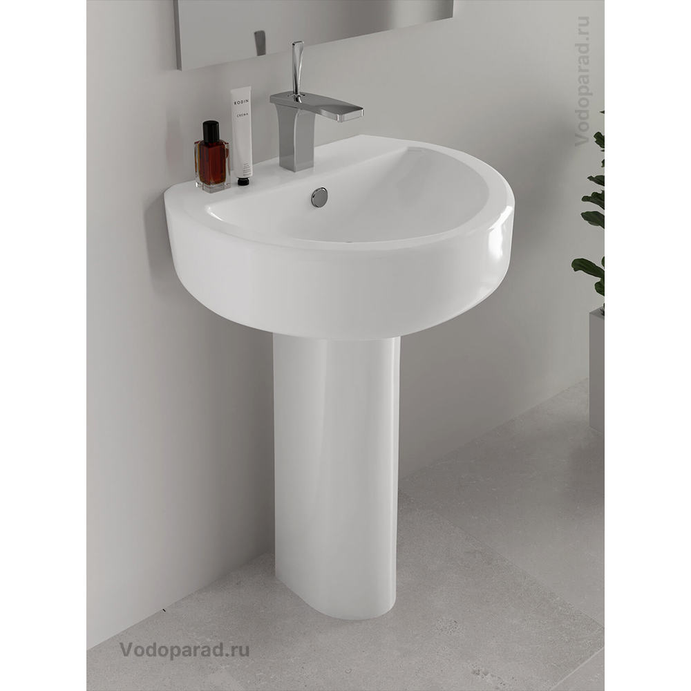 Умывальник на пьедестале Best сопровождает стилистику пространства ванной комнаты ясными геометрическими формами и точностью.