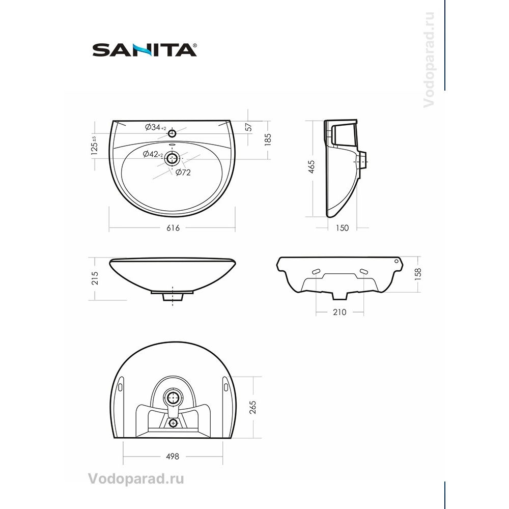 В комплект поставки входят крепления для установки и кольцо перелива. Смеситель и пьедестал в комплект поставки не входят и приобретаются отдельно.
