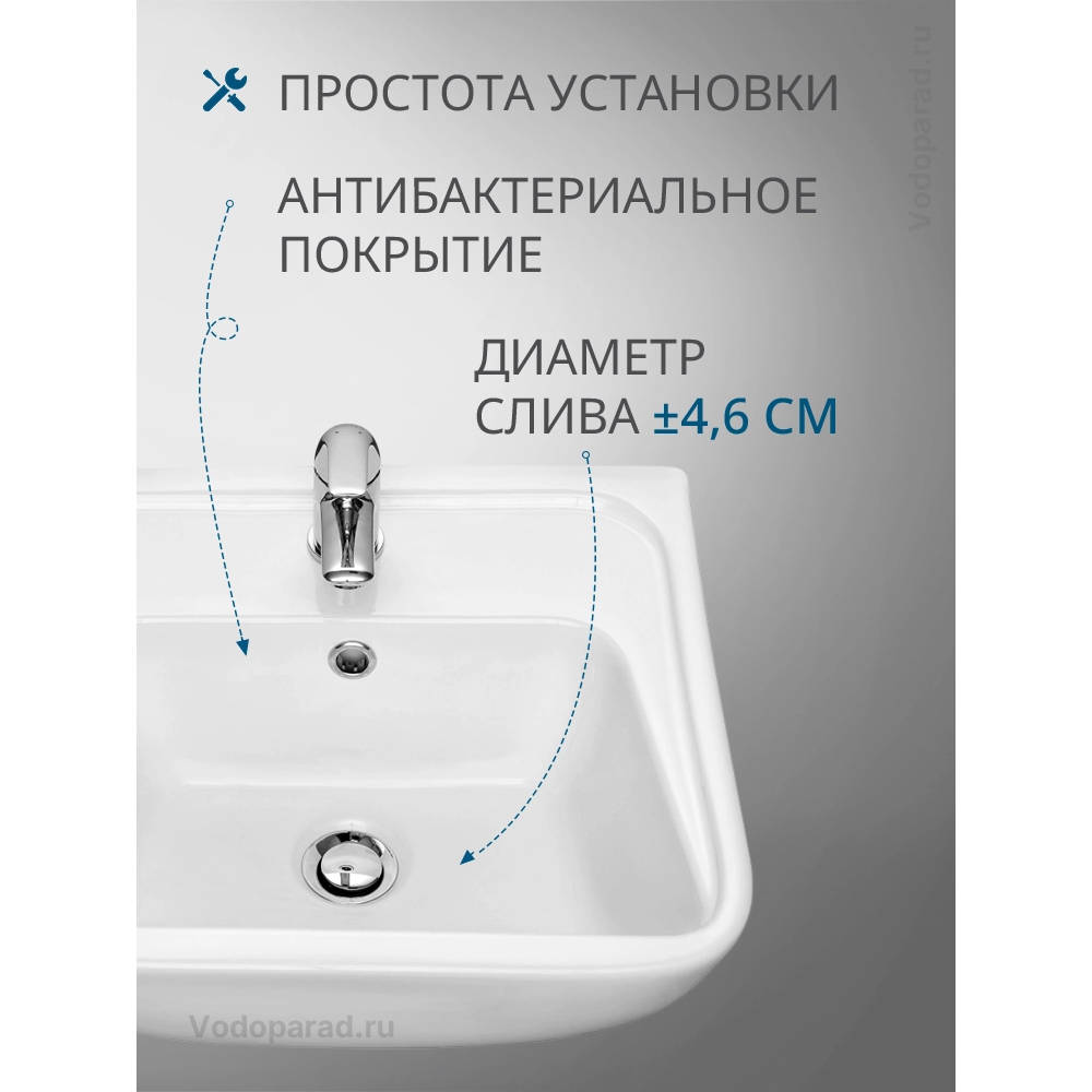 - Невысокий бортик для предотвращения попадания воды за пределы раковины