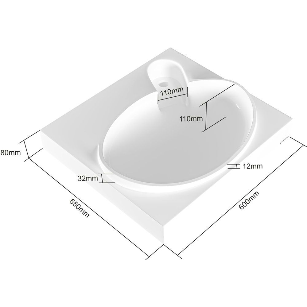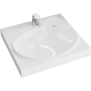 Раковина имеет габариты 60х55 см, и она является подвесной конструкцией, что упрощает её установку. Изготовленная из искусственного мрамора, она оснащена одним готовым отверстием под смеситель. Диаметр отверстия для сифона составляет 3.2 см. хоть установка донного клапана не предусмотрена, она поставляется в комплекте с кронштейнами. Максимальная допустимая глубина стиральной машины под раковиной — 40 см. Предусмотрена гарантия сроком на 1 год, и производство осуществляется в России.
