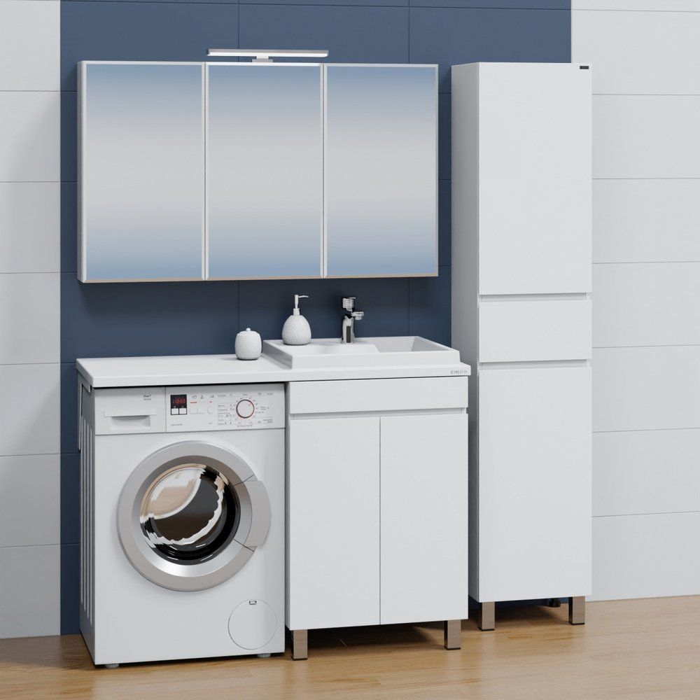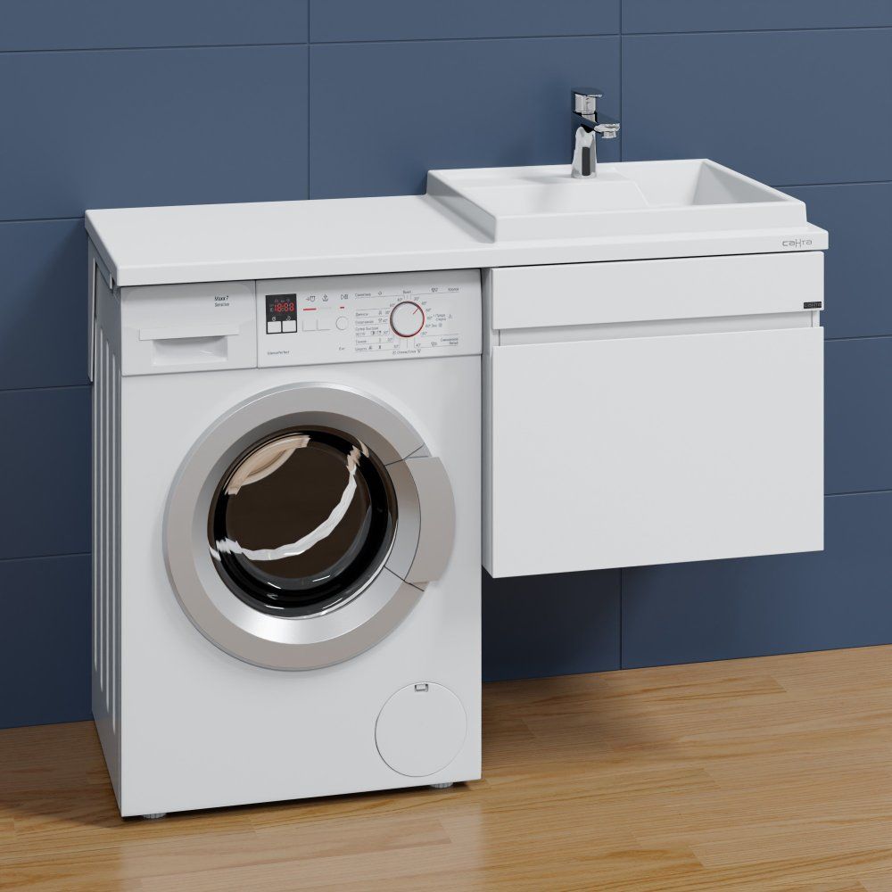 - Удобство монтажа и использование пространства с возможностью установки над стиральной машиной.