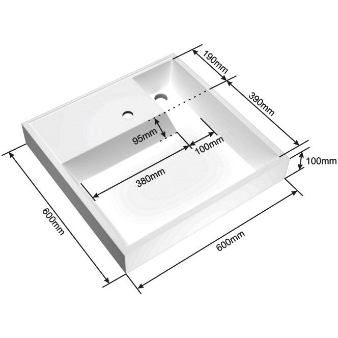 Раковина имеет размеры 60x60 см, что делает её достаточно просторной для комфортного использования. Изготовлена из искусственного мрамора, что придаёт изделию долговечность и устойчивость к воздействию влаги. Раковина подвесная, что обеспечивает легкость установки и экономию пространства в ванной комнате. Оснащена одним готовым отверстием под смеситель и рассчитана на сифон диаметром 3.2 см. Поставляется с удобным кронштейном, однако донный клапан необходимо приобрести отдельно.
