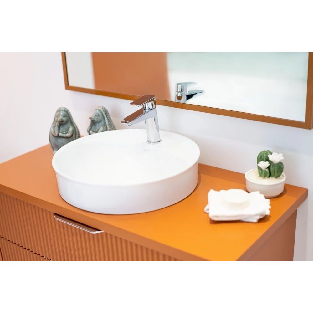 Раковина Serel Minimal 2058TXS110H имеет размеры 46x46 см, что позволяет ей гармонично вписаться даже в небольшие ванные комнаты. Изготовлена из прочного фарфора, она рассчитана на долгий срок службы. Подходит для сифона диаметром 3,2 см и оборудована одним готовым отверстием под смеситель, что упрощает установку.