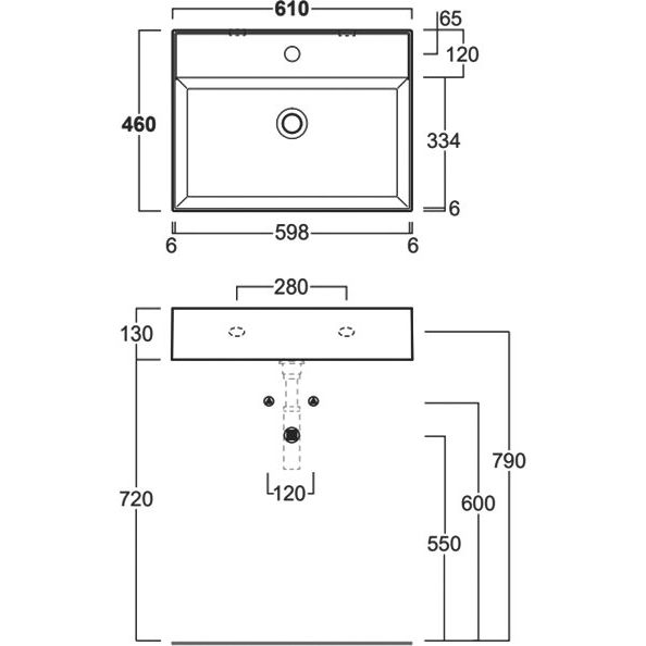 - Универсальные размеры 61x46 см позволяют разместить раковину в любых ванных комнатах.