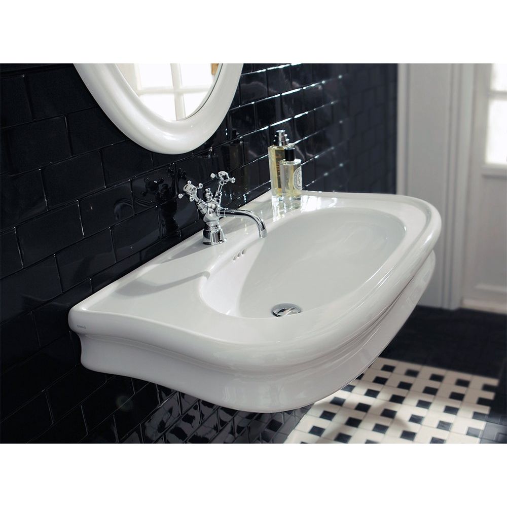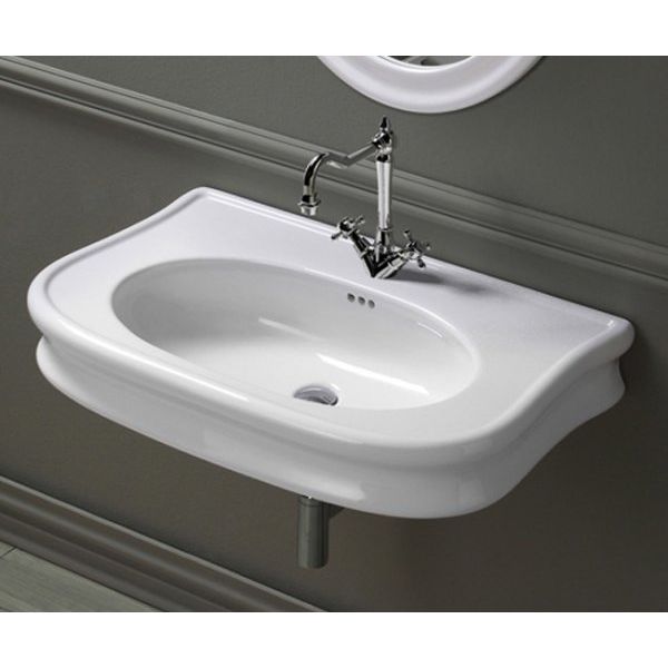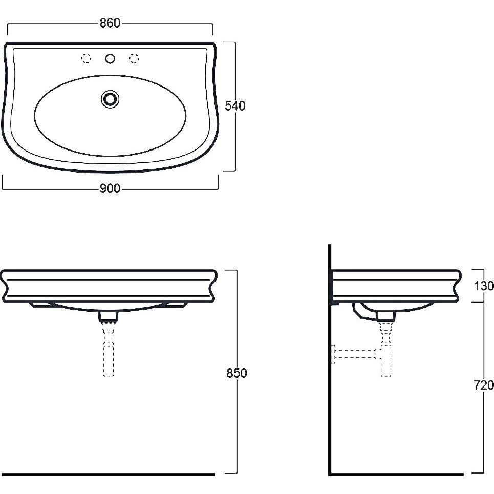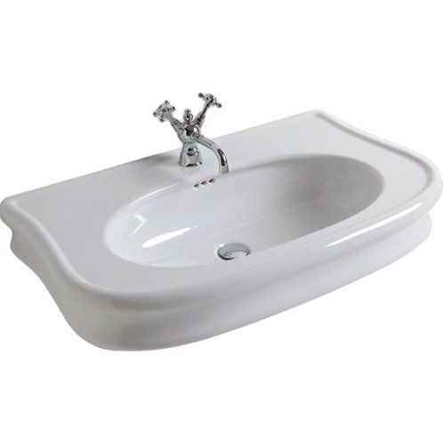 Раковина имеет габариты 90x54 см и выполнена из высококачественного фарфора, что обеспечивает ее надежность и эстетичный внешний вид. Доступно одно готовое отверстие под смеситель и два намеченных для дополнительной гибкости в установке. Диаметр для сифона составляет 3.2 см, однако, донный клапан потребуется приобретать отдельно. Изделие оснащено декоративным слив-переливом, который входит в комплект. Гарантия на раковину составляет 1 год.