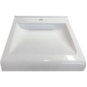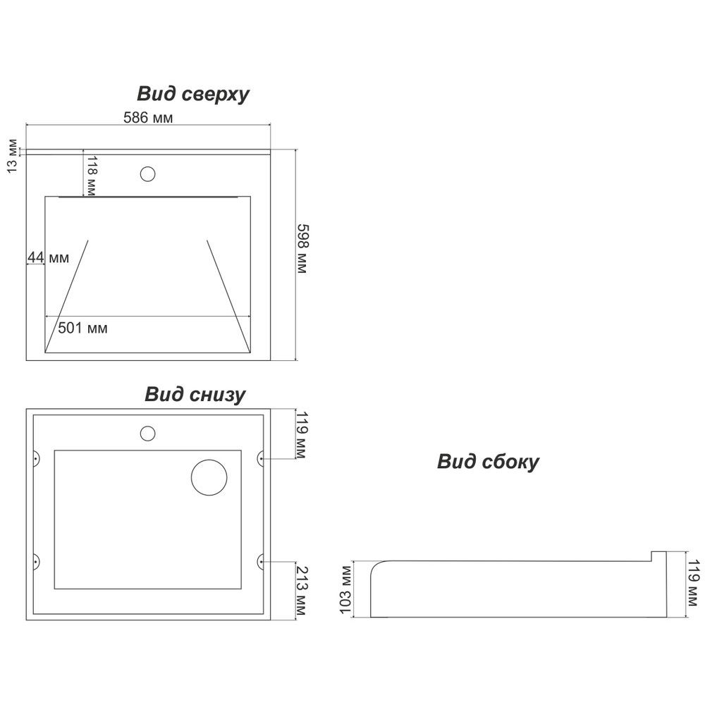 Раковина подвесного типа предназначена для крепления к стене. Изготовлена из искусственного мрамора, она не только красива, но и долговечна. Ее размеры составляют 58,6 см по ширине и 59,8 см по глубине. Диаметр отверстия для сифона — 3,8 см. Раковина имеет одно готовое отверстие под смеситель и возможность установки над стиральной машиной, что делает её универсальным решением для различных типов ванных комнат. Установка донного клапана не предусмотрена.