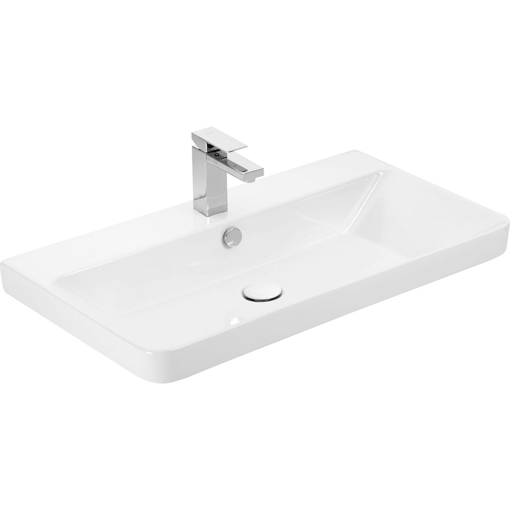 Эта модель имеет размеры 80,5 см в ширину и 46 см в глубину, что делает её достаточно компактной для большинства ванных комнат. Материал изготовления — прочный фаянс. Конструкция предусматривает наличие одного готового отверстия под смеситель, а также встроенного слива-перелива. Стоит отметить необходимость отдельной покупки донного клапана. Для подсоединения сифона предусмотрен диаметр 3,2 см. Раковина производится в Турции и сопровождается 10-летней гарантией качества.