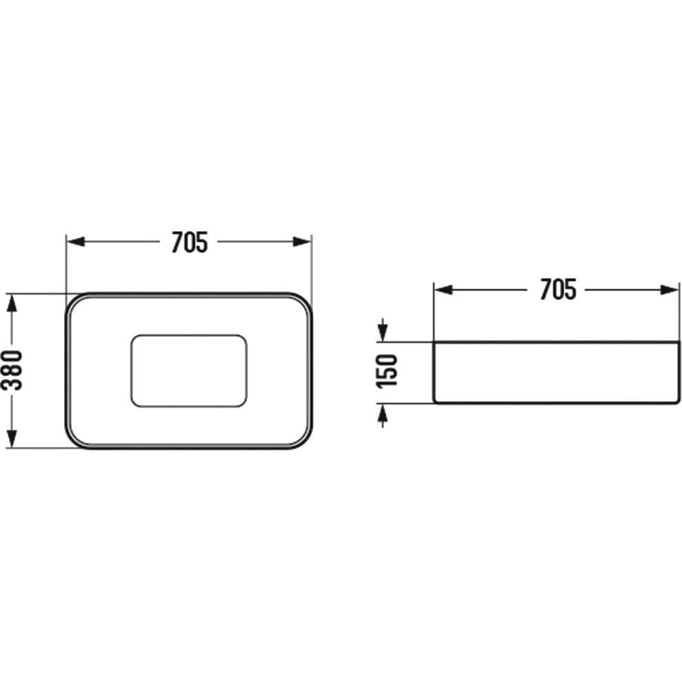 Раковина имеет размеры 70,5x38 см, что делает её идеальной для различных планировок ванных комнат, как небольших, так и более просторных. Подходит для сифона с диаметром 3.2 см. Установка донного клапана не предусмотрена, что упрощает уход за изделием благодаря минимализму в конструкции.