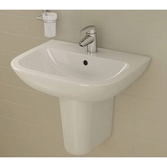 Раковина VitrA S20 5502B003 имеет размеры 55x44 см и выполнена из прочного фарфора, обеспечивая как внешнюю привлекательность, так и устойчивость к мелким повреждениям. Она предназначена для использования с сифоном диаметром 3.2 см и оснащена встроенным сливом-переливом, что делает ее безопасной и практичной в эксплуатации. Одно отверстие под смеситель позволяет выбрать и установить подходящий вариант смесителя по вашему вкусу. Поставляется с комплектующим полупьедесталом высотой 34 см, выполненным также из фарфора.