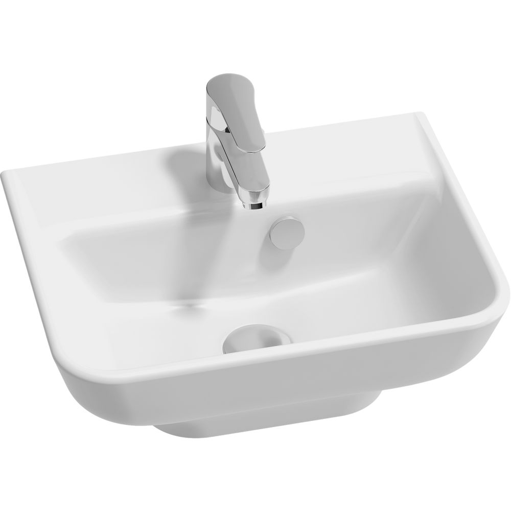 Рукомойник Jacob Delafon Struktura EGH112 — подвесная модель размером 45x35 см, что делает его отличным выбором для небольших помещений. Изготовлен из прочного фарфора и оборудован встроенным сливом-переливом. Он поставляется с одним готовым отверстием под смеситель и рассчитан на сифон диаметром 3.2 см. Помните, что донный клапан необходимо приобретать отдельно.