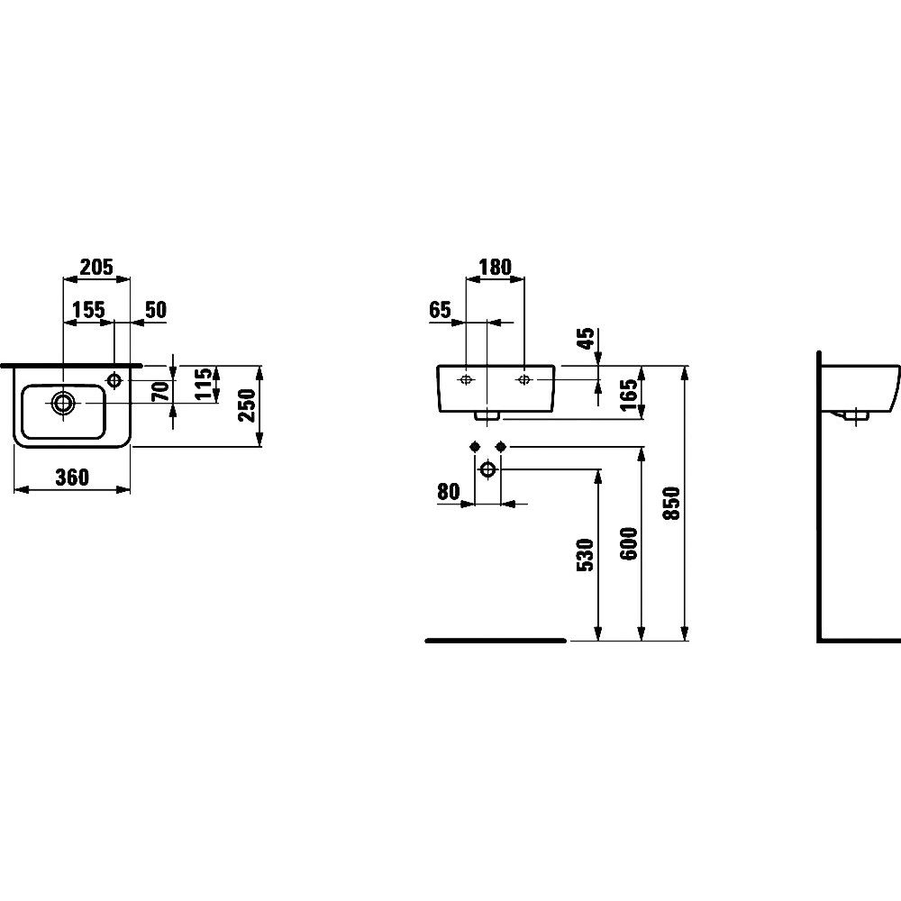 Рукомойник Laufen Pro A имеет компактные размеры 36x25 см, что позволяет оптимально использовать пространство в ванной комнате. Подвесная конструкция облегчает уборку и придает ощущение легкости. Изделие оснащено встроенным сливом-переливом и имеет одно отверстие для установки смесителя. Обратите внимание, что донный клапан необходимо приобрести отдельно, а стандартный диаметр для сифона составляет 3.2 см.