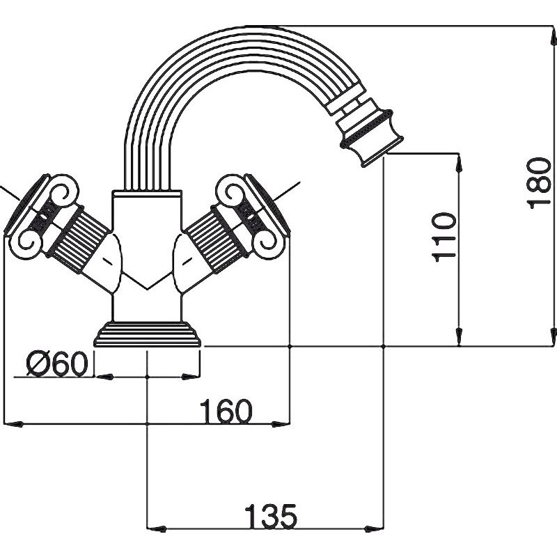 Смеситель для биде Cezares Olimp оснащен изливом длиной 13.5 см, что обеспечивает оптимальный поток воды и комфорт использования. В комплекте имеется аэратор, который снижает расход воды, и гибкая подводка для легкой установки. Смеситель удерживается креплениями, что обеспечивает стабильность и безопасность.