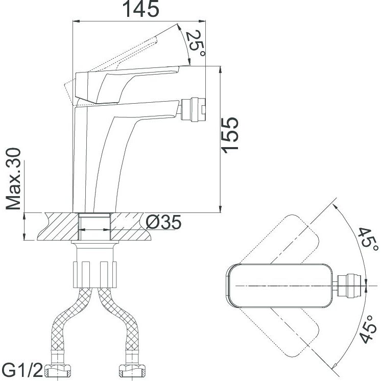 Смеситель имеет длину излива 14,5 см, что оптимально для использования в биде. Рычажное управление обеспечивает удобство в повседневной эксплуатации. Глянцевая поверхность добавляет изделию эстетическую привлекательность, а гибкая подводка и крепления в комплекте облегчают его установку. Продукт произведен в Германии, что говорит о высоком качестве и надежности.