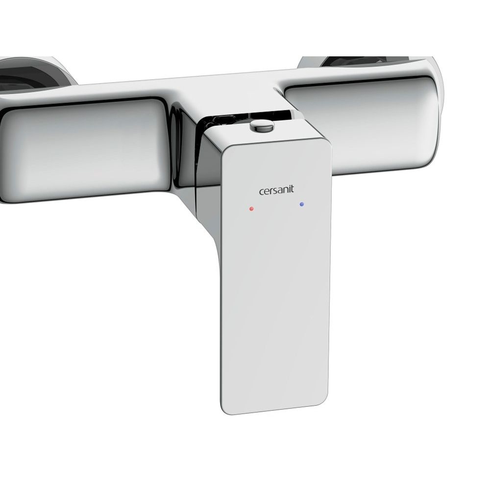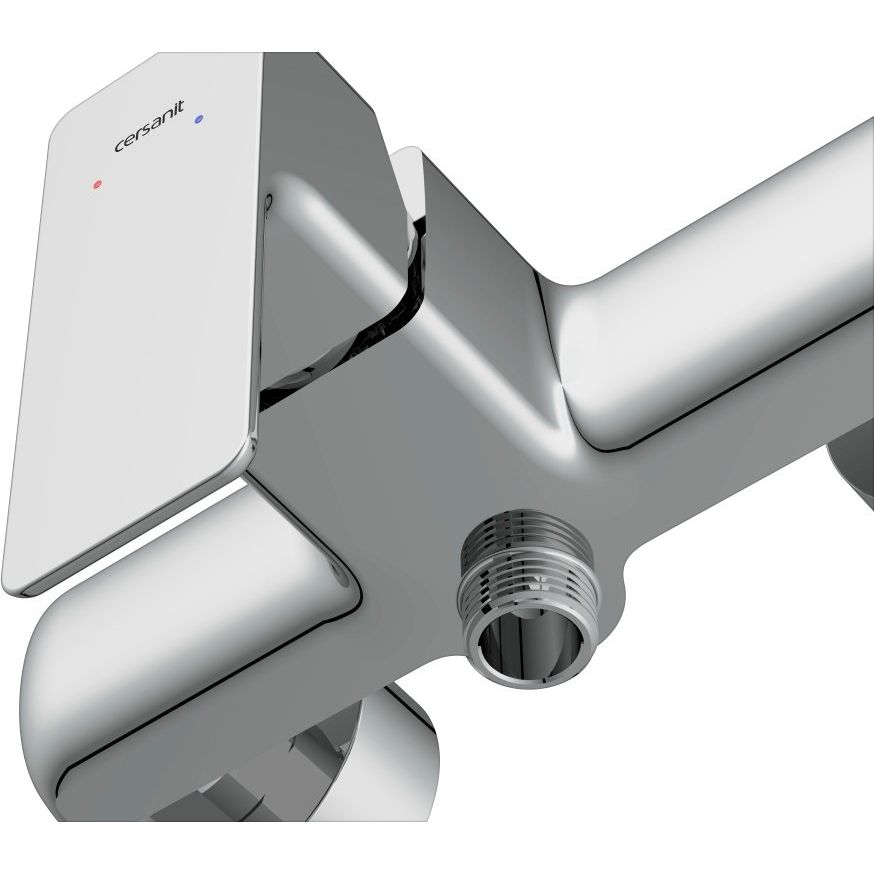 Смеситель для душа Cersanit Geo 63041 изготовлен из прочной латуни, которая гарантирует долговечность и надежность в эксплуатации. Он оборудован керамическим картриджем, рассчитанным на интенсивное использование, и покрытием, на котором меньше скапливается известковый налет. Подводка составляет 1/2 дюйма, что соответствует российским стандартам подключения. Глянцевая поверхность придаёт изысканный вид, а форсунки легко очищаются от известкового налета простым проведением по ним пальцем.